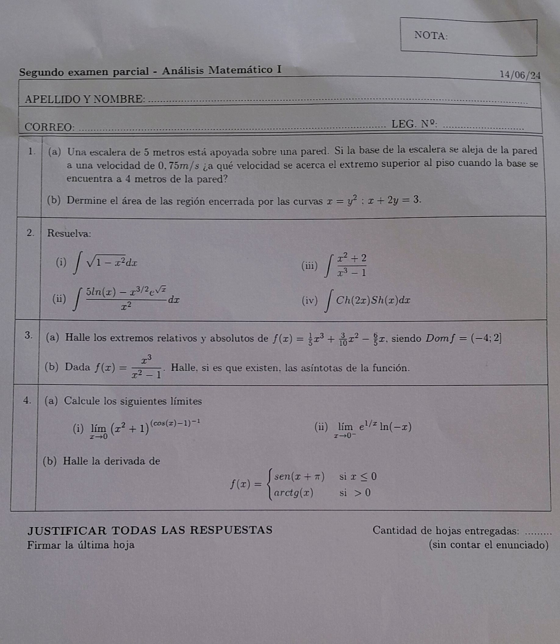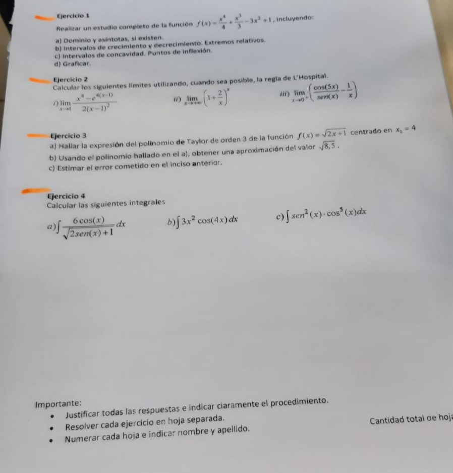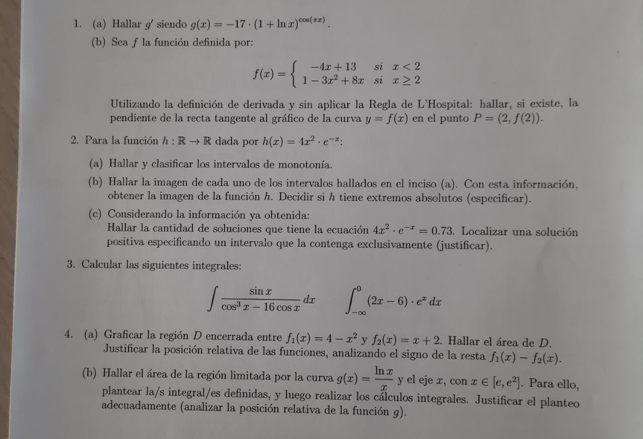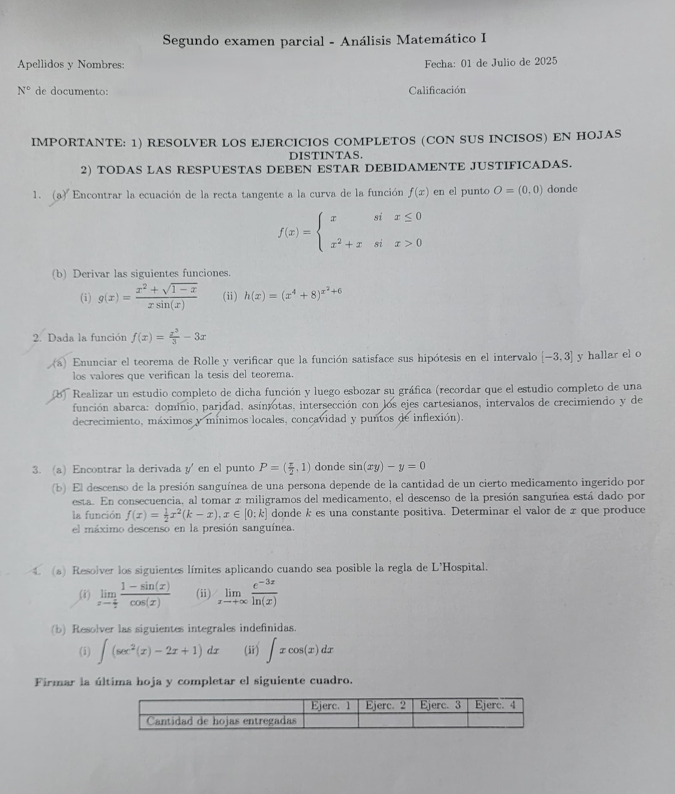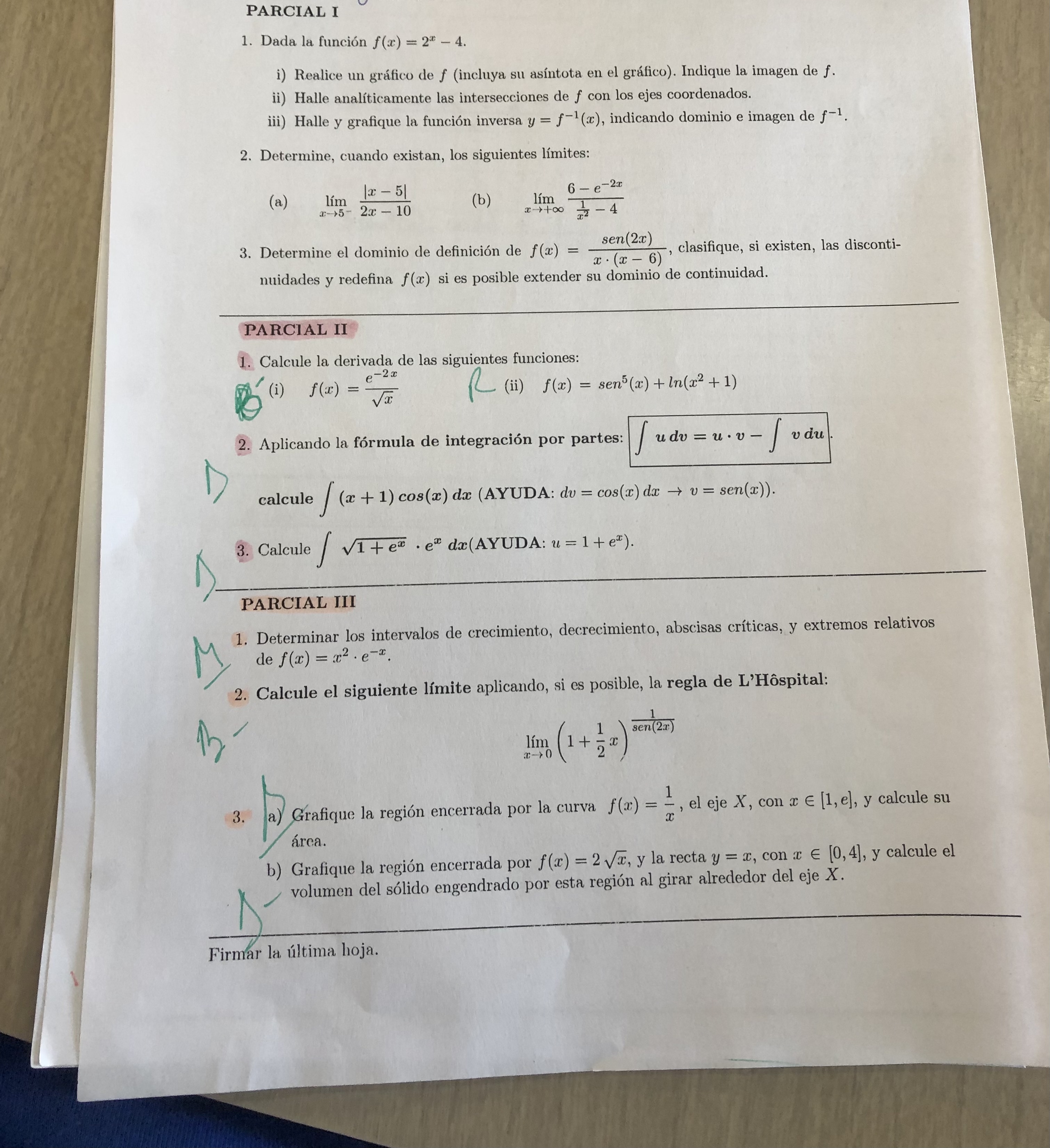 2do Parcial Primer Cuatrimestre 2023. Temas: Aplicación de Derivadas, Regla de L'hopital, Integrales.