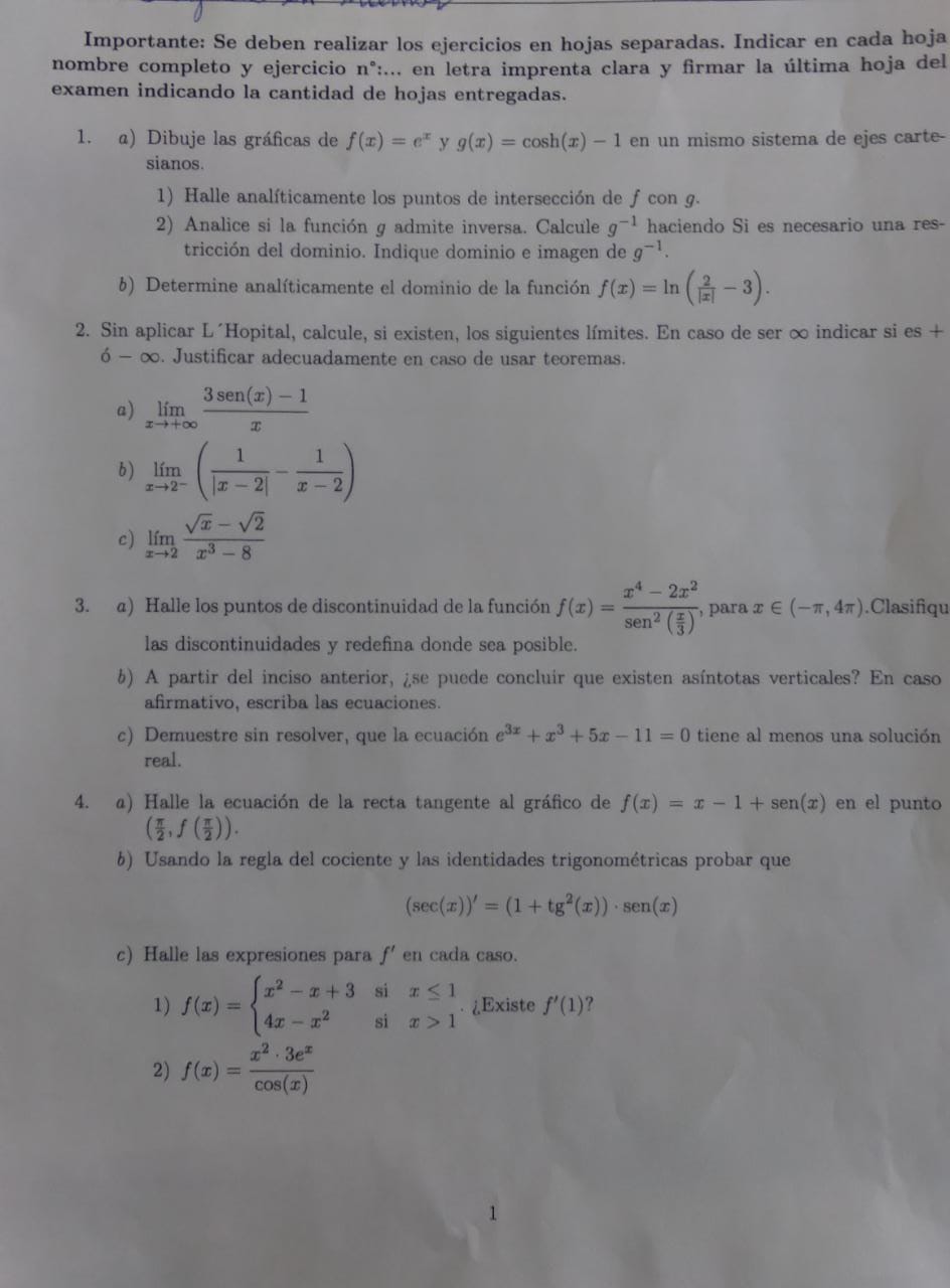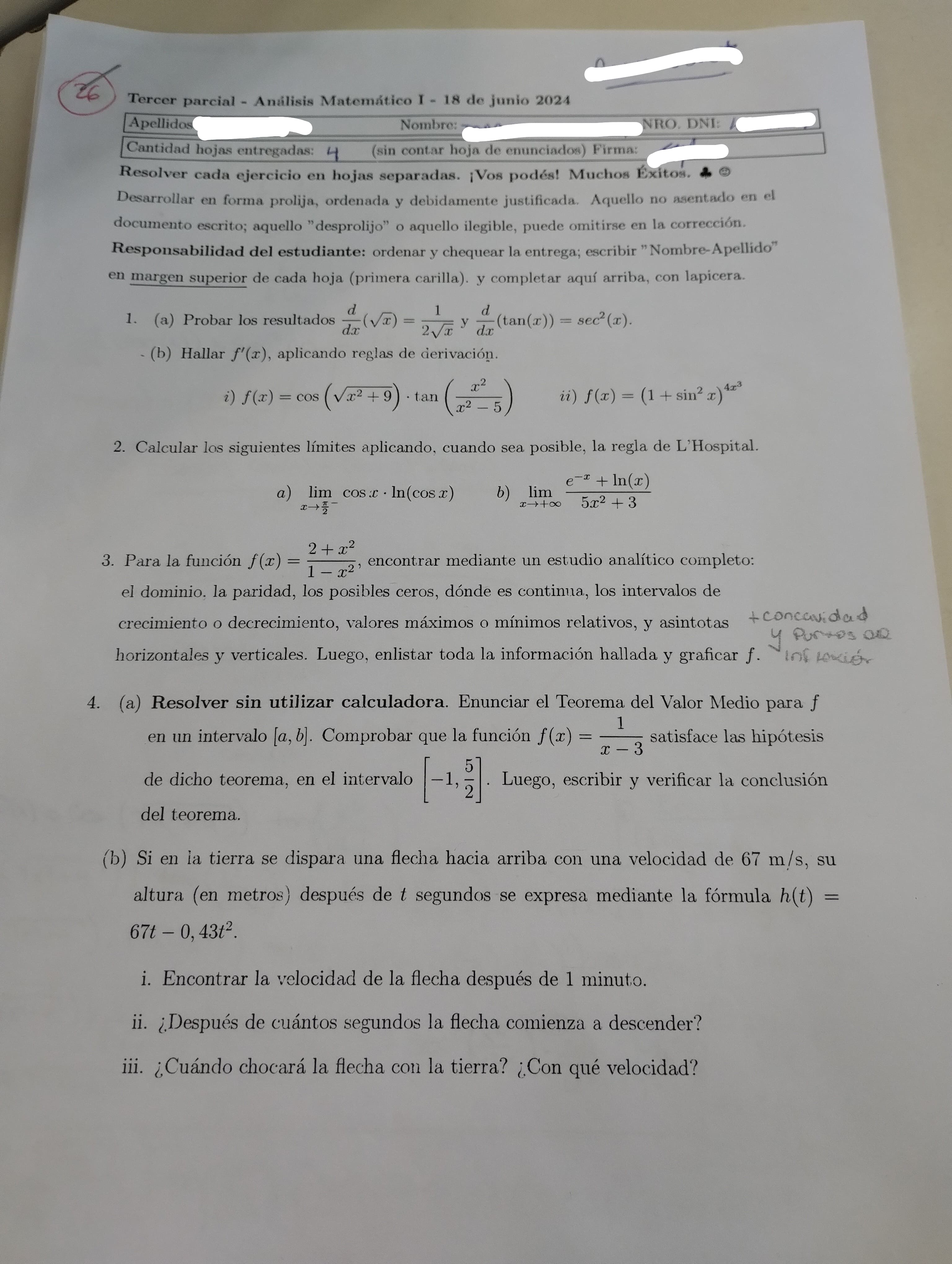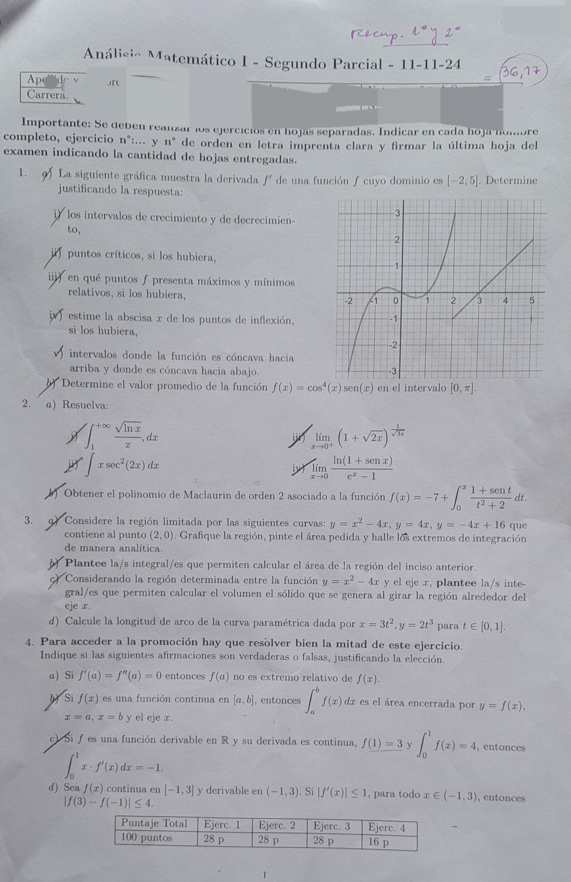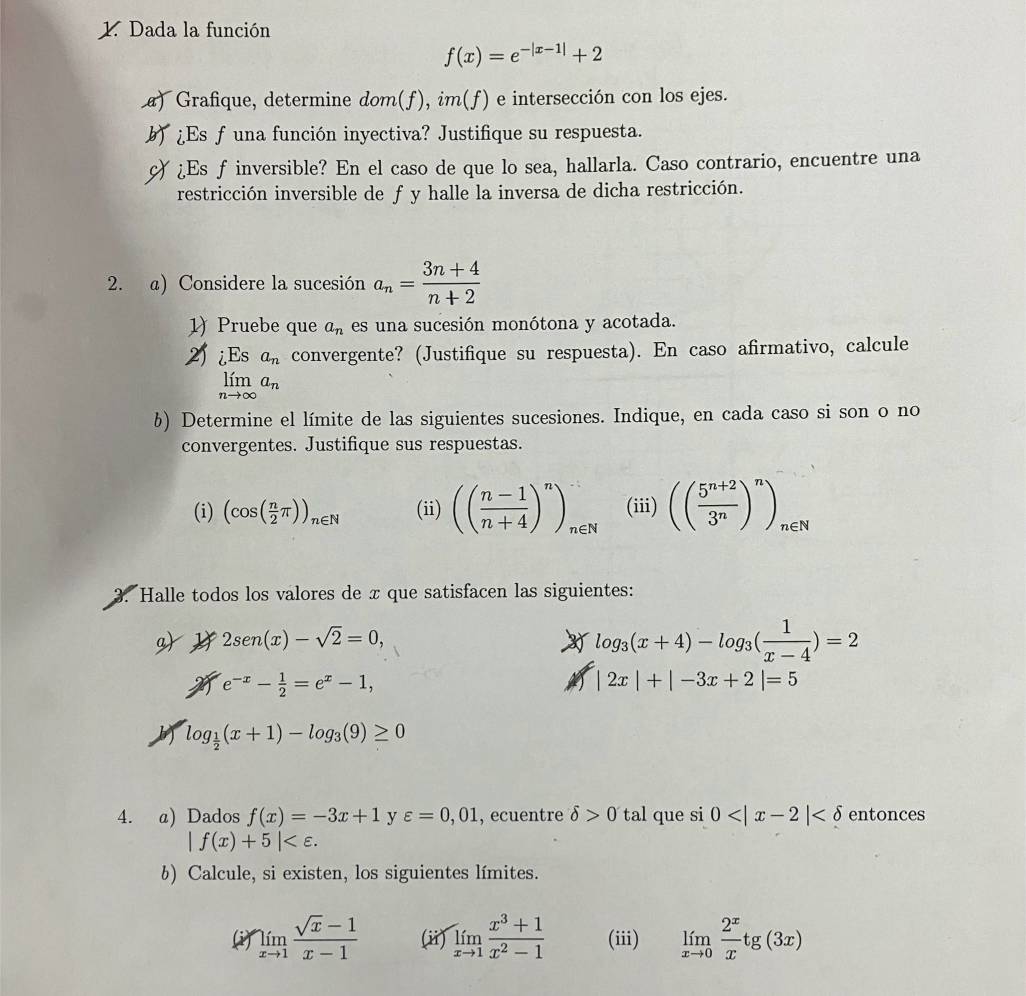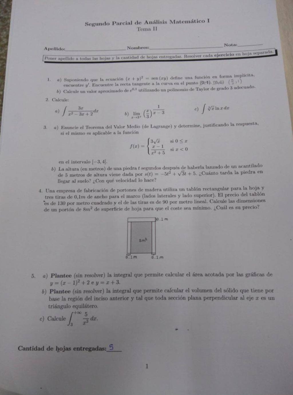 2do Parcial Primer Cuatrimestre 2023. Temas: Aplicación de Derivadas, Regla de L'hopital, Integrales.
