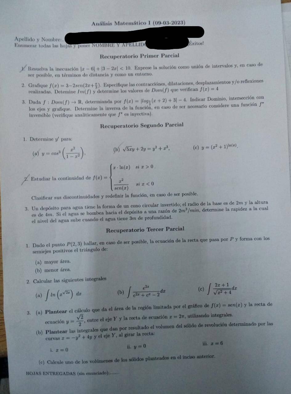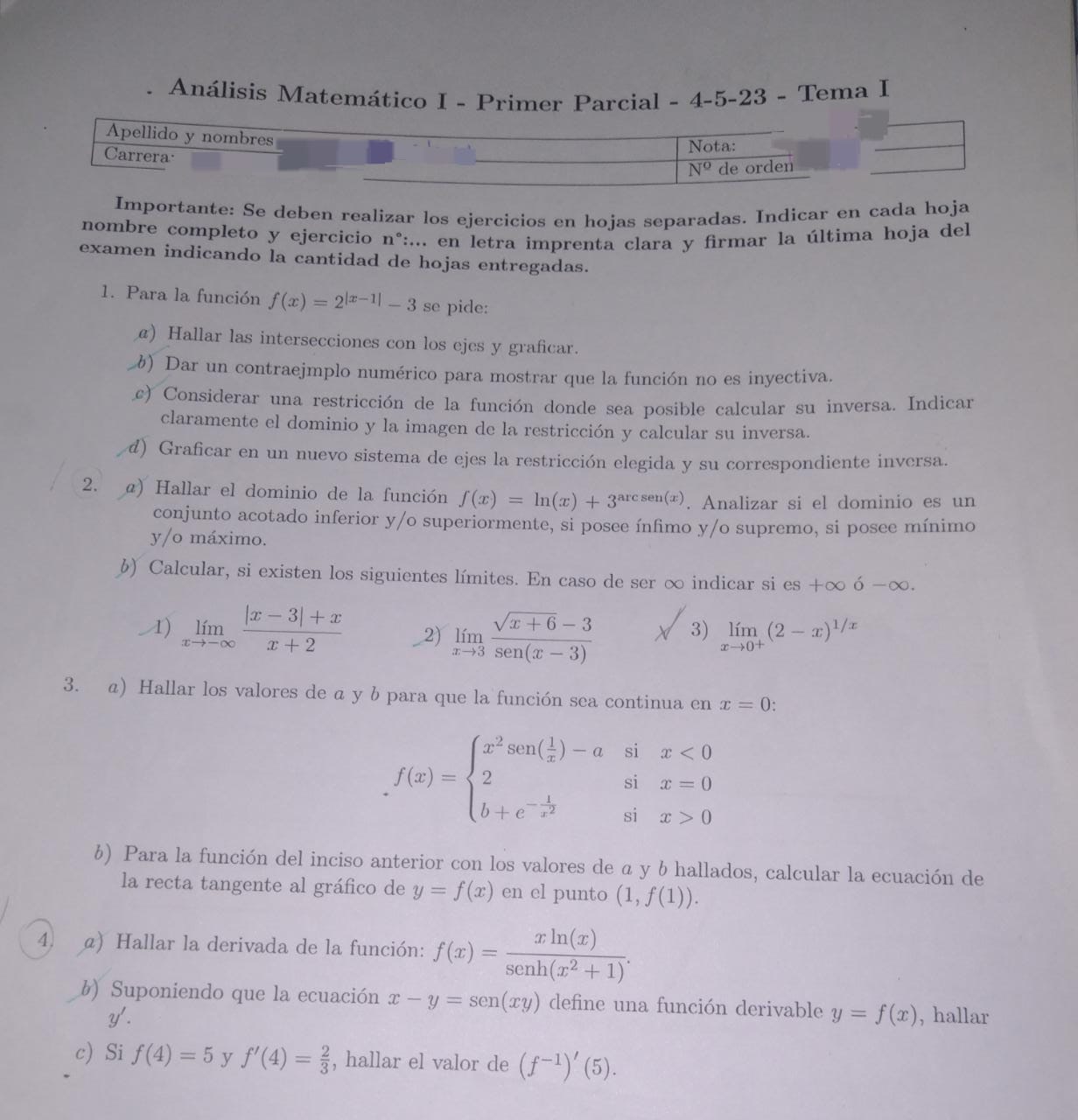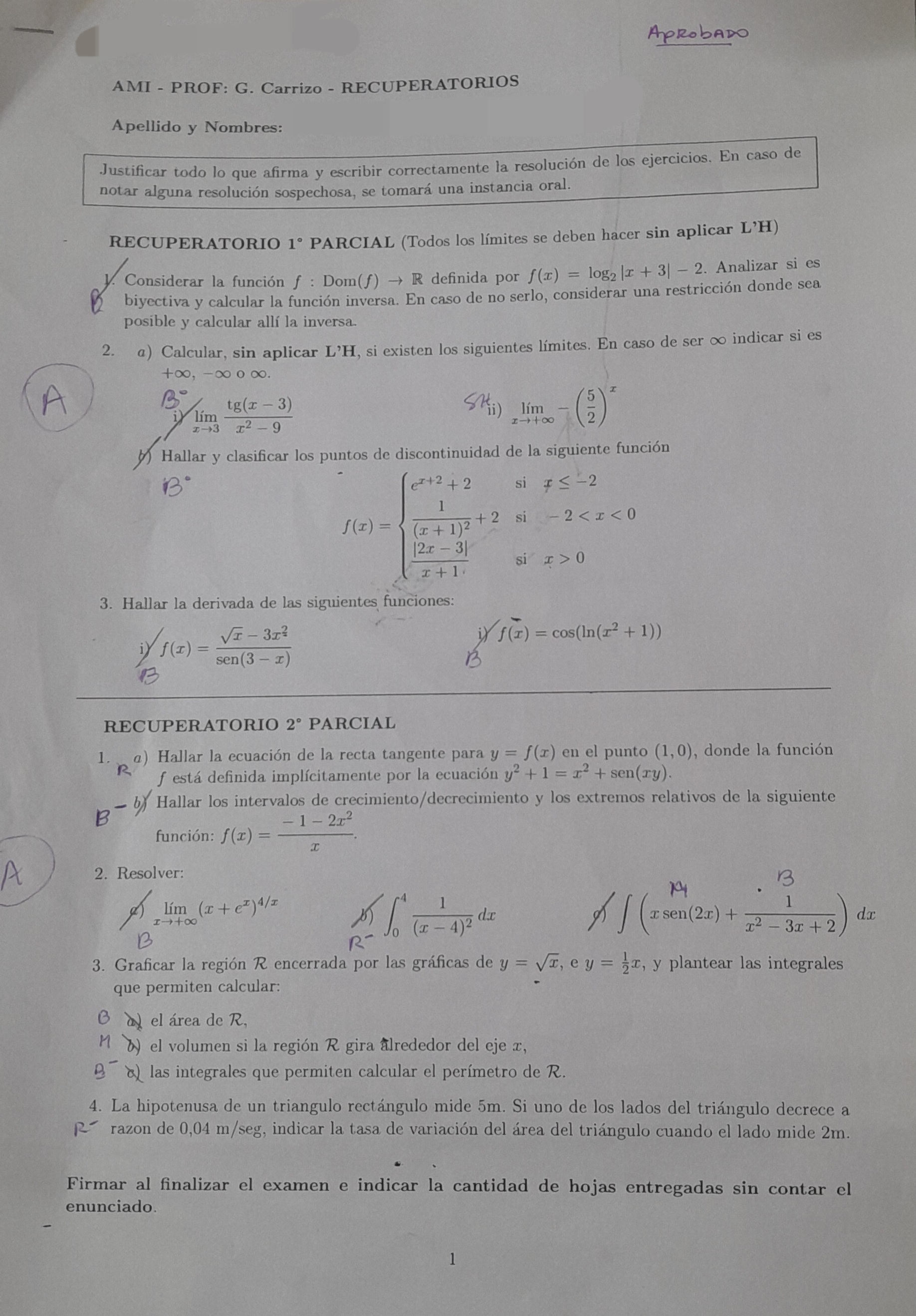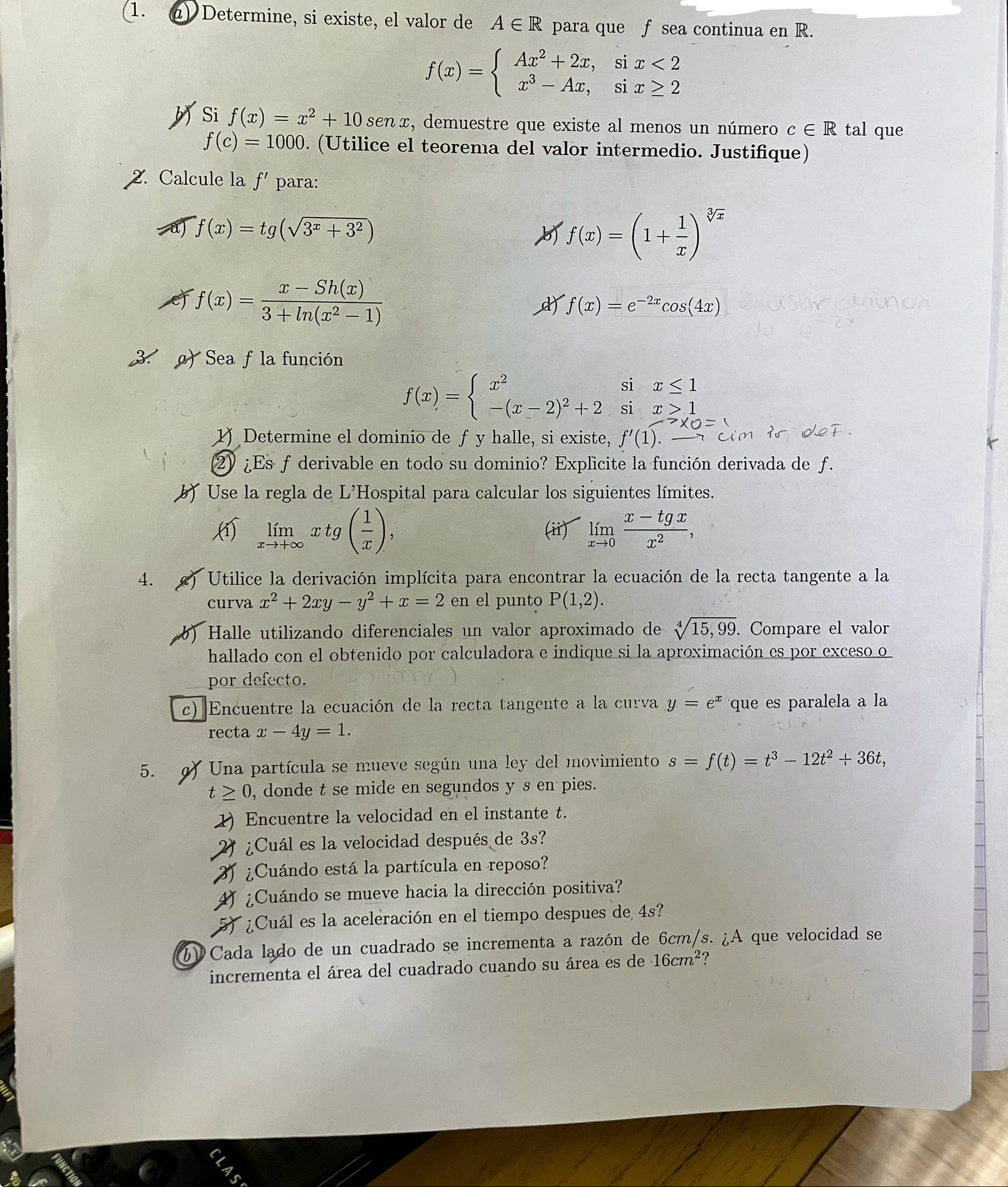 2do Parcial Primer Cuatrimestre 2023. Temas: Aplicación de Derivadas, Regla de L'hopital, Integrales.