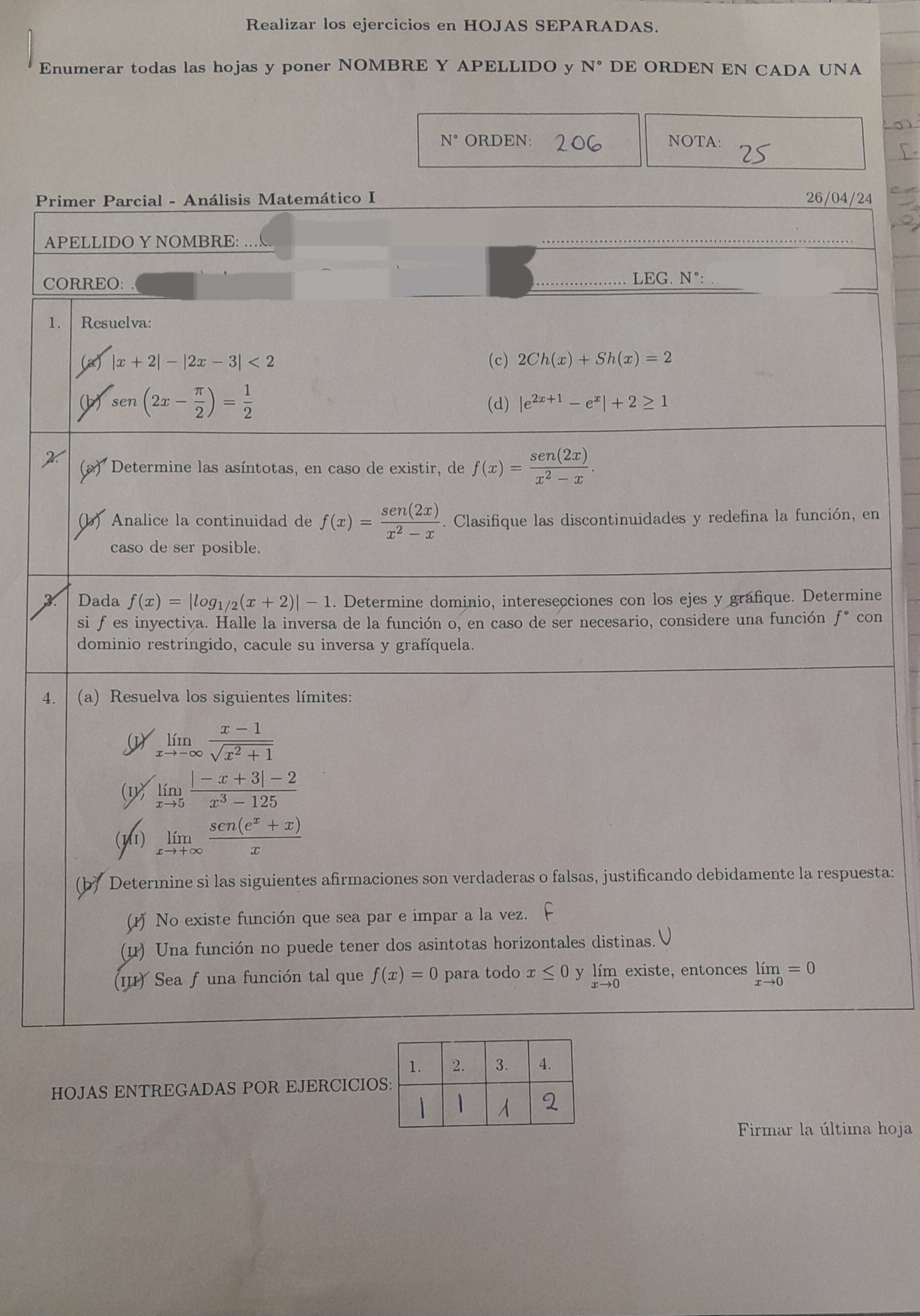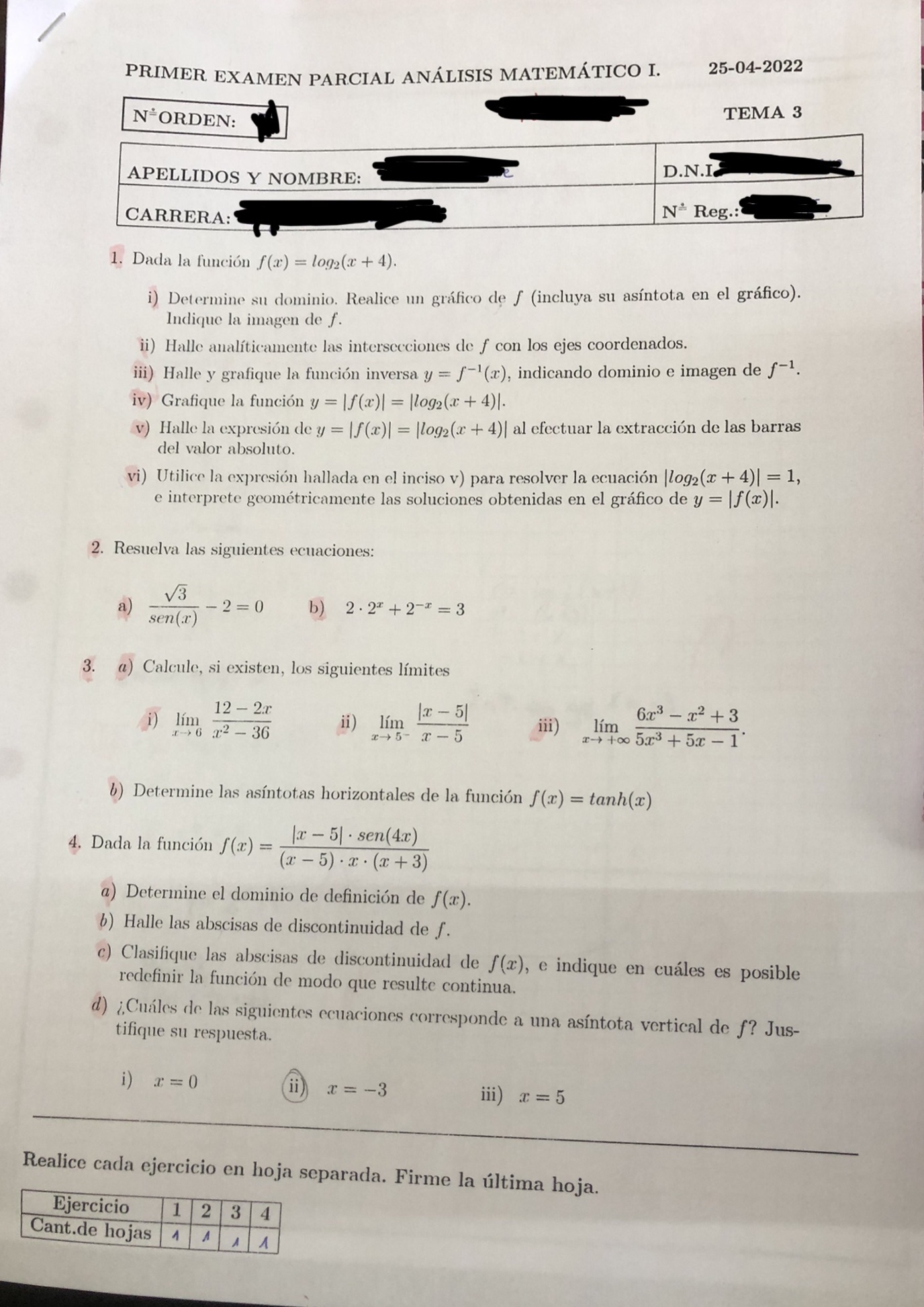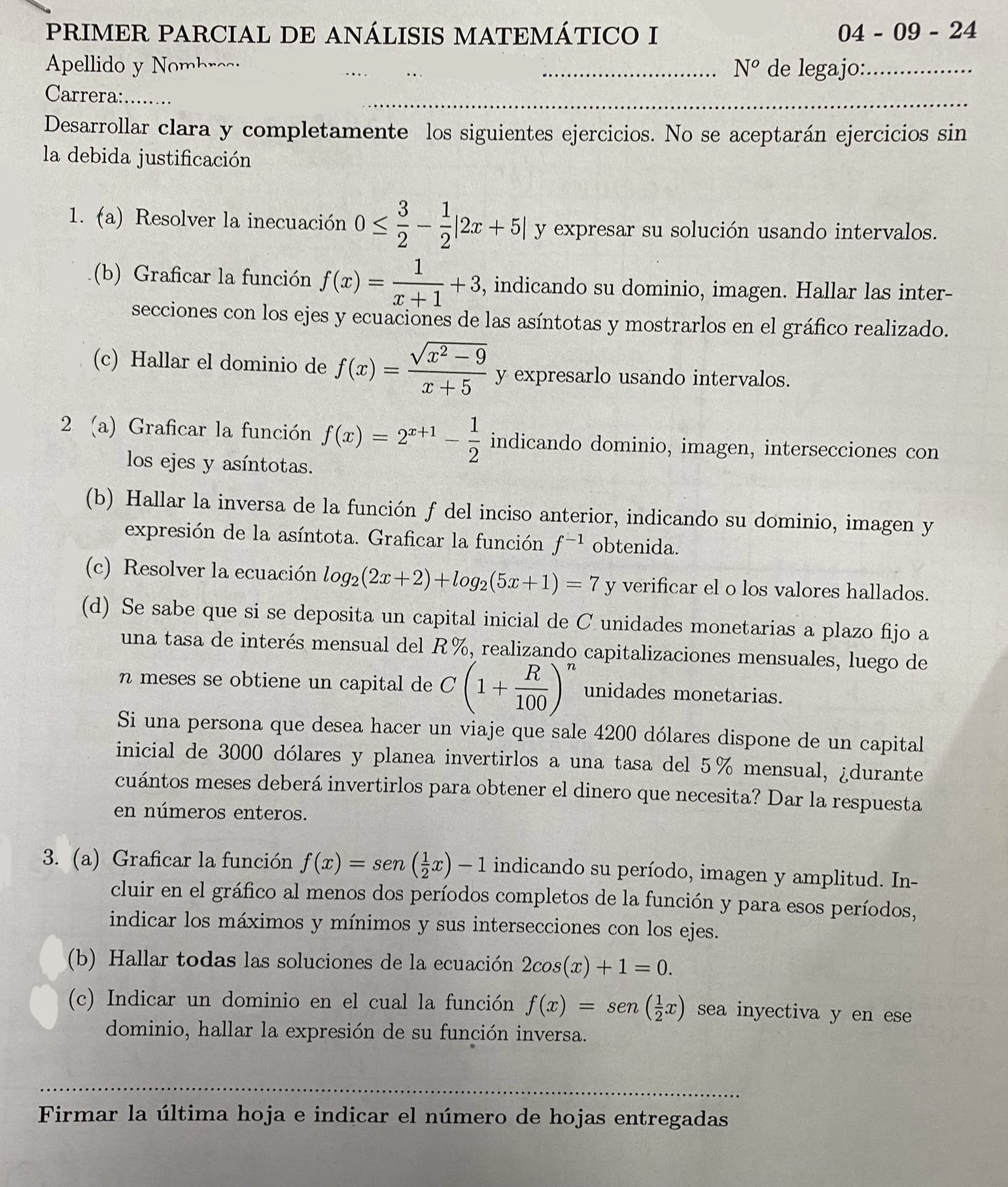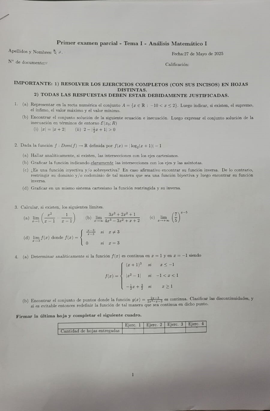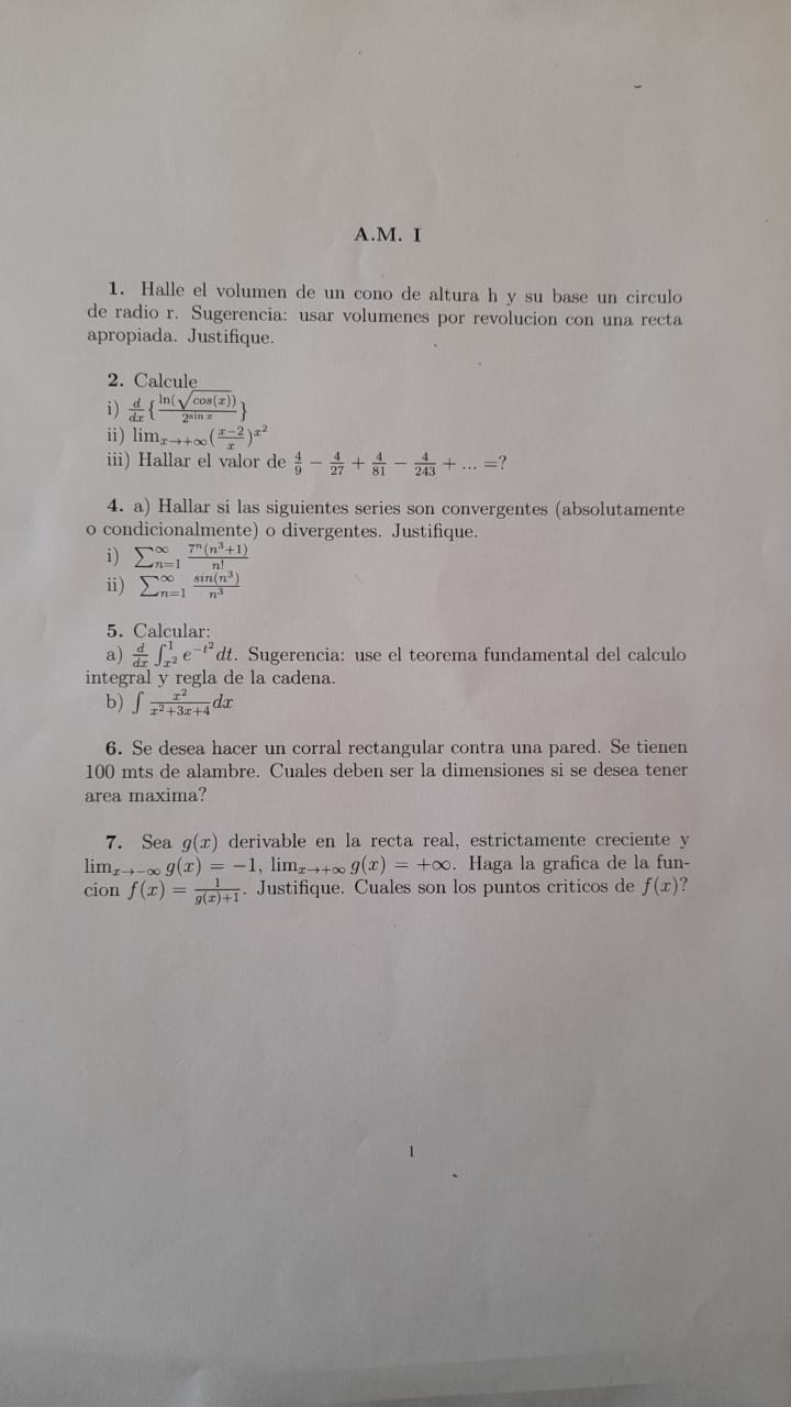 2do Parcial Primer Cuatrimestre 2023. Temas: Aplicación de Derivadas, Regla de L'hopital, Integrales.