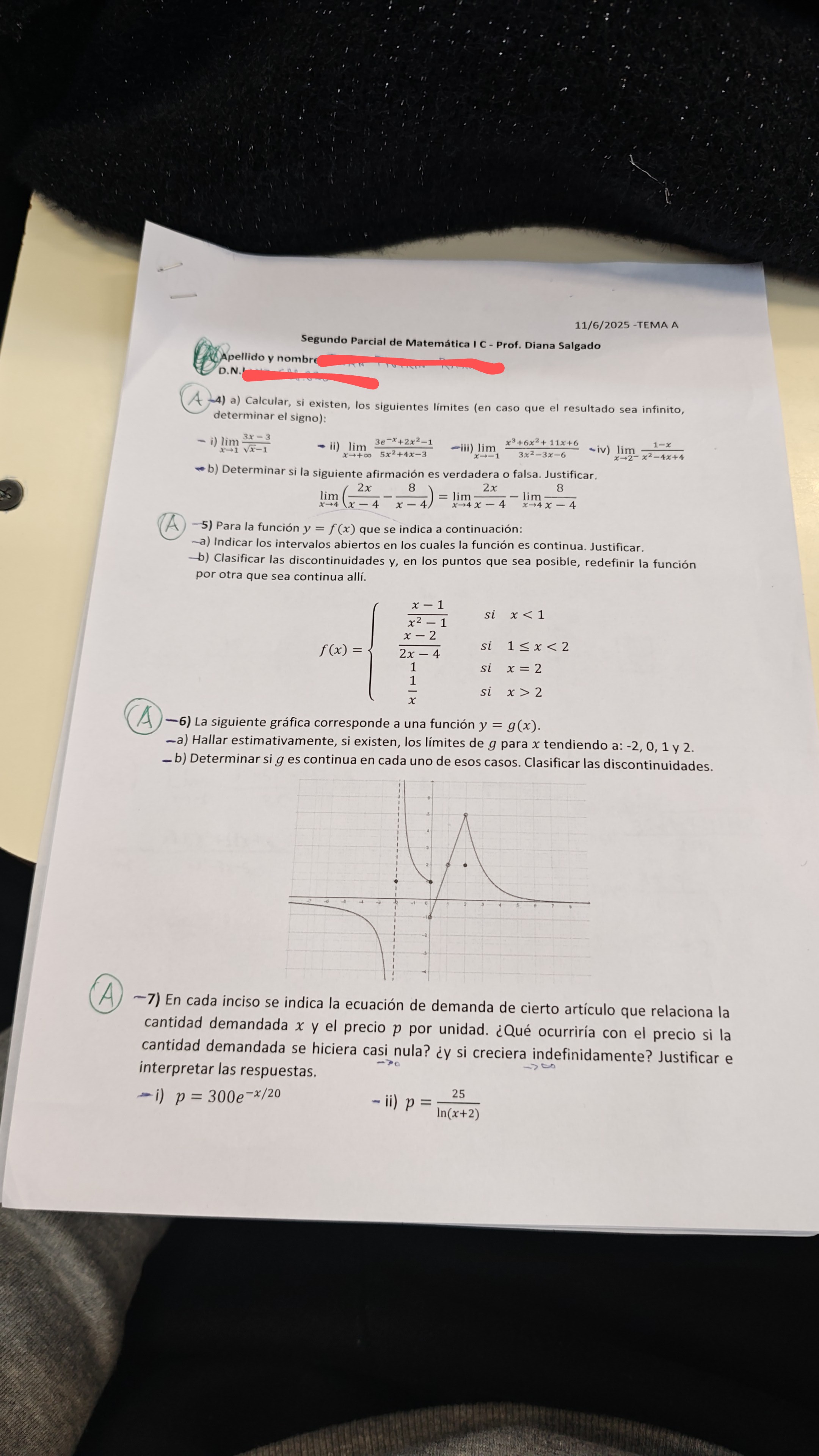 La profe dijo que no iba a dar más las horas de esta materia pero bueno, es un parcial de cálculo de límite, cálculo de continuidad, determinar continuidad a partir de un grafico y problemas de continuidad aplicados a la economía