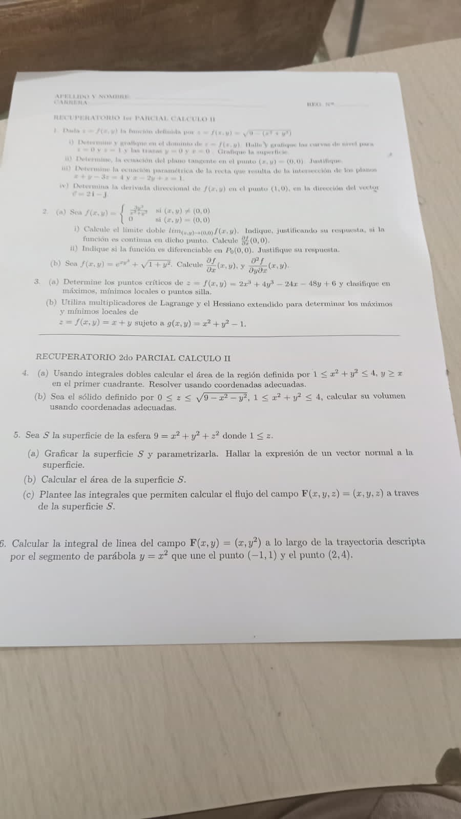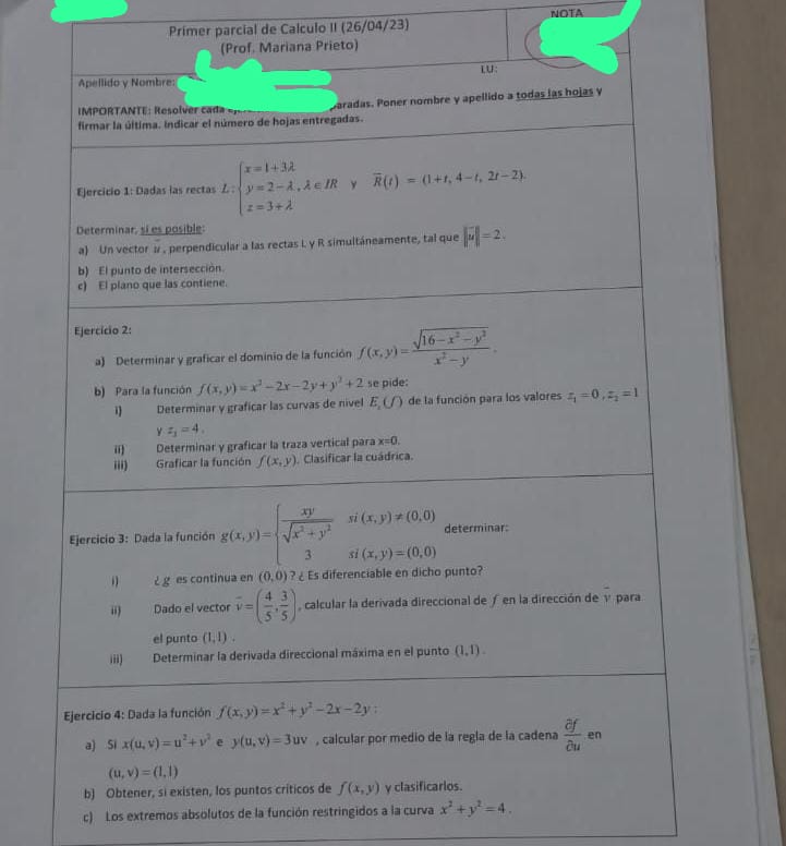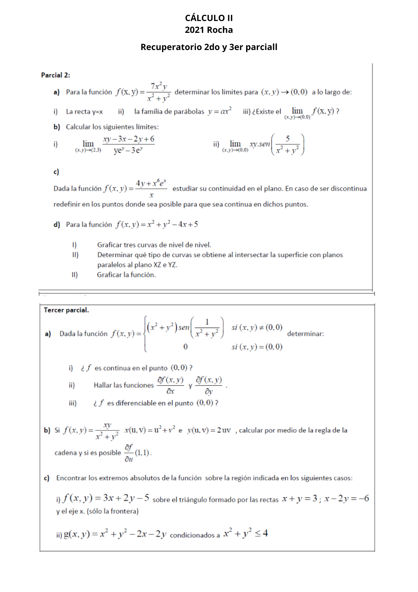 Recuperatorio general ( 1er y 2do parcial) de CALCULO 2