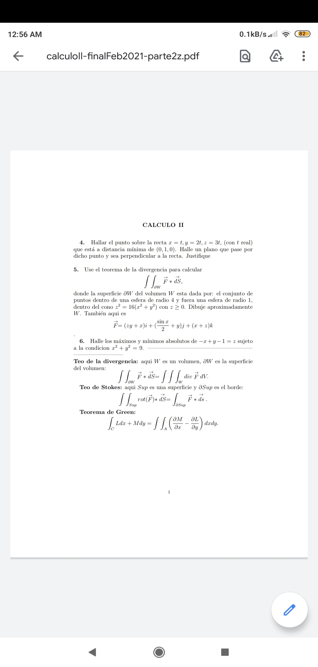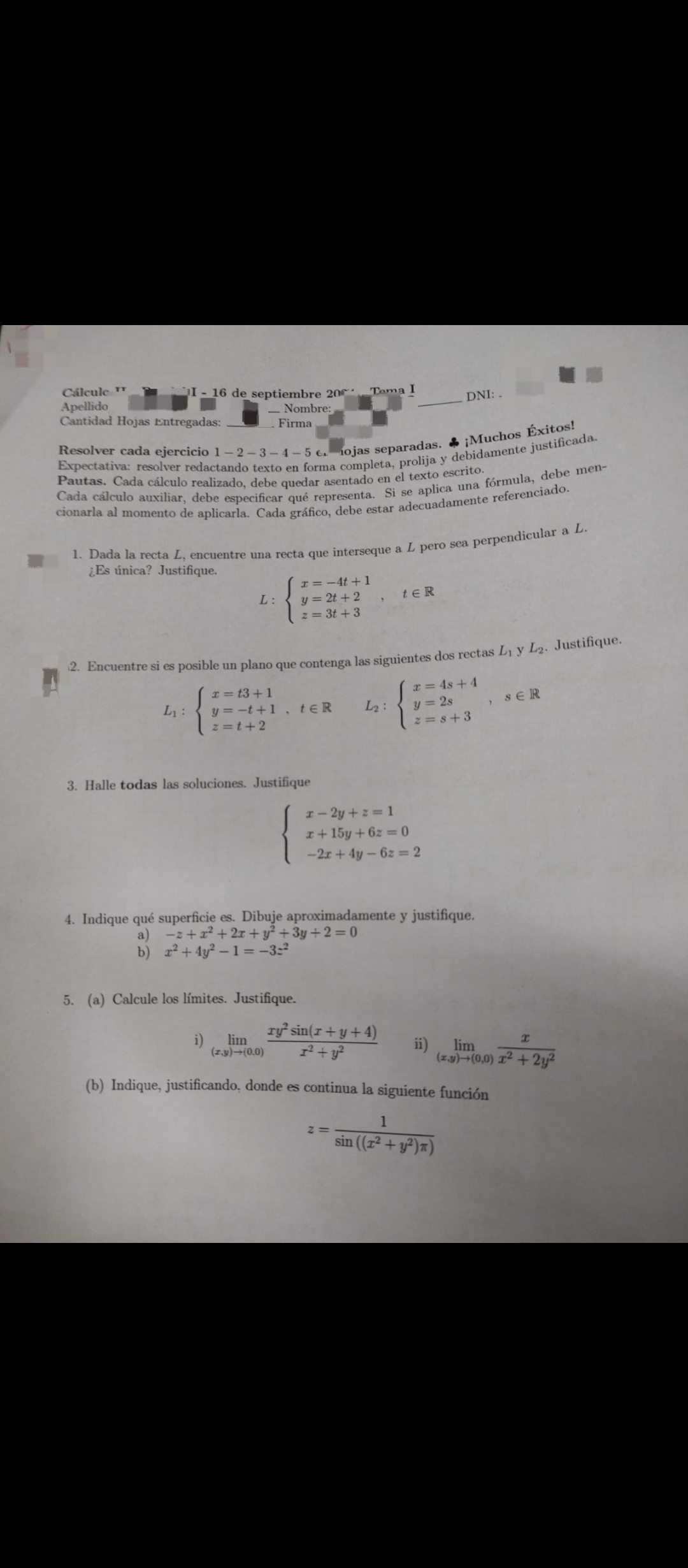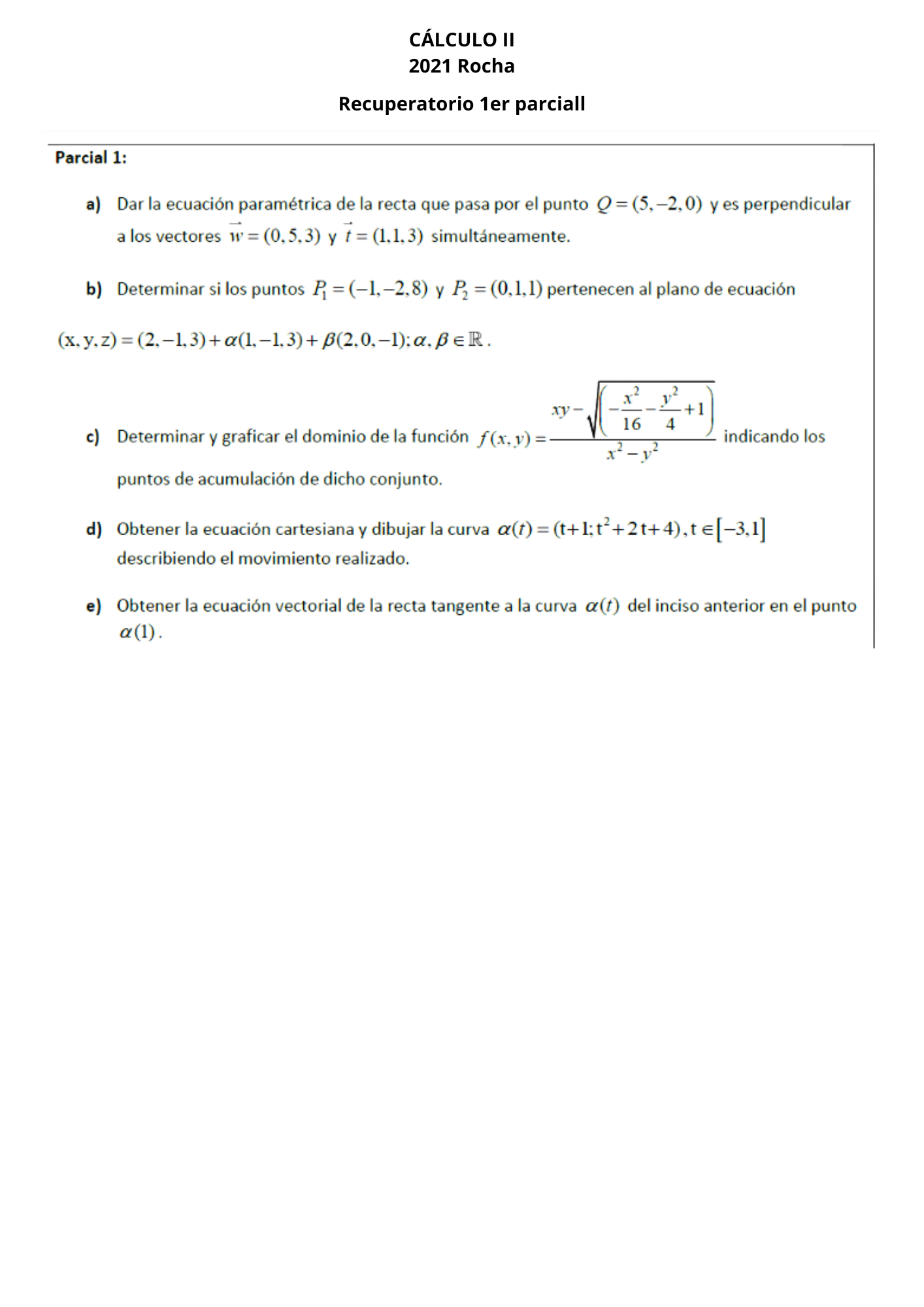 Recuperatorio general ( 1er y 2do parcial) de CALCULO 2
