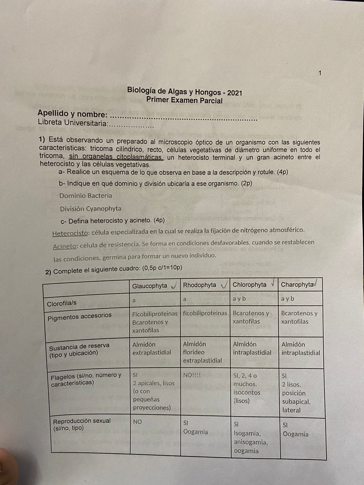 Segundo parcial de BAyH parte de HONGOS. Las palabras entre paréntesis eran imagenes.