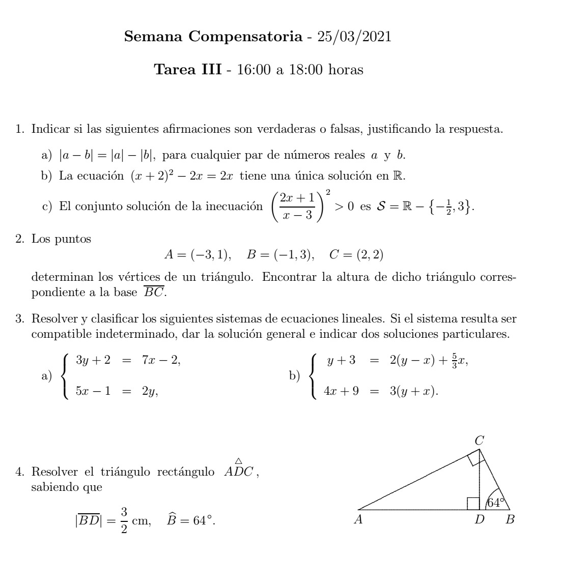 Recuperatorio de Diagnostico y Nivelacion Matematica