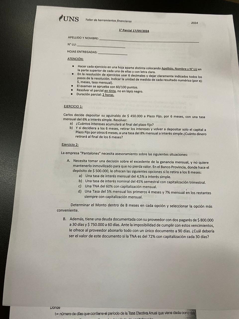 Taller de Matematica Financiera La