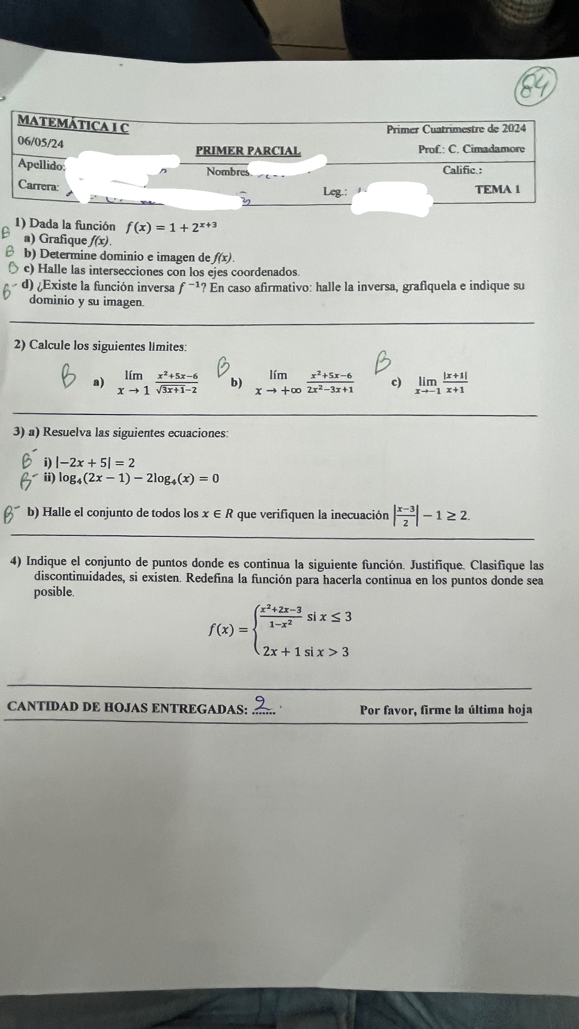 La profe dijo que no iba a dar más las horas de esta materia pero bueno, es un parcial de cálculo de límite, cálculo de continuidad, determinar continuidad a partir de un grafico y problemas de continuidad aplicados a la economía
