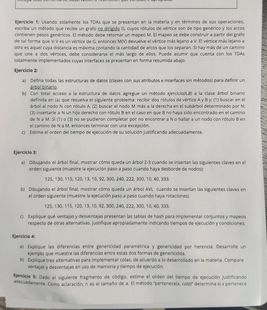 TDA: pila, cola, cola con prioridad, arbol, arbol binario, lista, grafo, mapeo, diccionario, etc