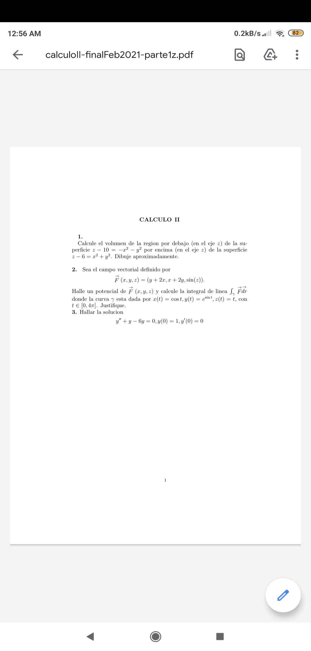 Recuperatorio general ( 1er y 2do parcial) de CALCULO 2